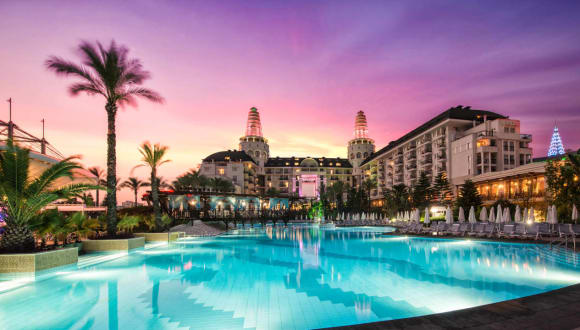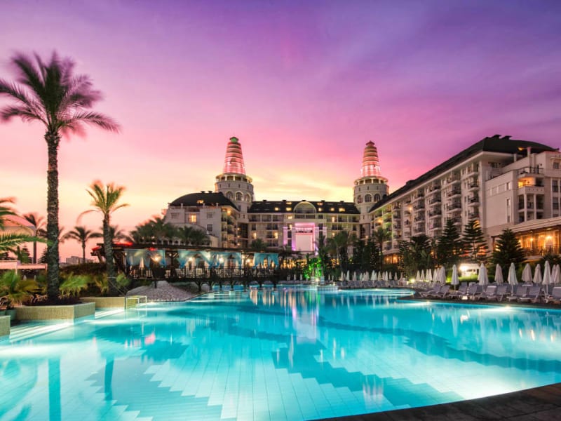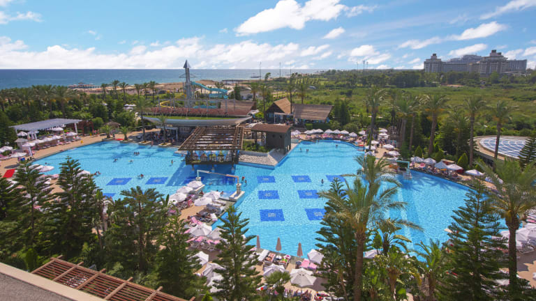 Leistungen die im ULTRA ALL INCLUSIVE Konzept enthalten sind Offenes Buffet; Frühstük – Spätfrühstück, Mittagessen, Abendessen und Mitternachtsnack, 7 a la carte Restaurants sind pro Aufenthalt 1 mal kostenlos (Reservierung erforderlich), Lokale alkoholische Getränke, alkoholfreie Getränke sowie einige Import Getränke , Die Minibar wird täglich mit Wasser, Softdrinks und Bier aufgefüllt, Safe im Zimmer, 1 Tennisplatz, Beleuchtung und Ausrüstung (mit Reservierung und gegen Kaution), Hamam, Sauna, Dampfbad, Fitness Center, Tischtennis, Dart, Aerobik, Wassergymnastik, Gymnastik, Step, Surfen (nur mit Lizenz), Kanu, Fitness, Beach Volleyball, Animationsprogramm, nichtmotorisierter Wassersport, Hallenbad, Hauptpool, Kinderpool, Pool mit Wasserrutschen, Die Öffnungszeiten der Pools können sich ändern und sind wetterabhängig, Relaxpool ist für Erwachsene, für Gäste unter 15 Jahren ist der Relaxpool nicht gestattet, Sonnenschirme, Liegen, Badetücher werden wetterabhängig vergeben, Im Zimmer und Lobby WiFi Animation, Sportturniere, Pool-Spiele, Abendshows, Live Musik (gelegentlich), Diskothek, Kino, Zimmerservice zwischen 00:00 – 06:00 Uhr, Parkplatz, Lunapark Leistungen die NICHT im ULTRA ALL INCLUSIVE Konzept enthalten sind Telefon, Fax, Einige Importgetränke, Internet Cafe, Game Room, Computerspiele, Bowling, Billard, Tischfussball, Motorisierte Wassersportarten, Kosmetiksalon, Kleopatra Milchbad, Peeling mit „Anti Stress’’ Anwendungen, Jacuzzi im Spa, Massage, Friseur, Shoppingcenter, Arzt (zwischenzeitlich), Wäscherei & Bügel Service, Zimmerservice zwischen 06:00 – 00:00 Uhr, Tennisunterricht Sonstiges: In den Restaurants und Bars werden die Getränke an die Tische serviert, kann auch von den Gästen selbst genommen werden. Für die Gäste unter 18 Jahren werden keine alkoholischen Getränke ausgeschenkt. Alkoholische Getränke werden nicht in Flaschen und nicht beim Frühstück serviert. Das Tragen eines Plastikarmbandes ist erforderlich. Es sind keine Tiere gestattet. Am Pier und in allen Ausseneinrichtungen wird wetterabhängig Service geleistet. Die Ausleihe von Rollstuhl und Babywagen sind an der Rezeption auf Anfrage gegen Kaution möglich. Geldwechsel ist an der Rezeption möglich Gültige Kreditkarten: Visa, Master Card