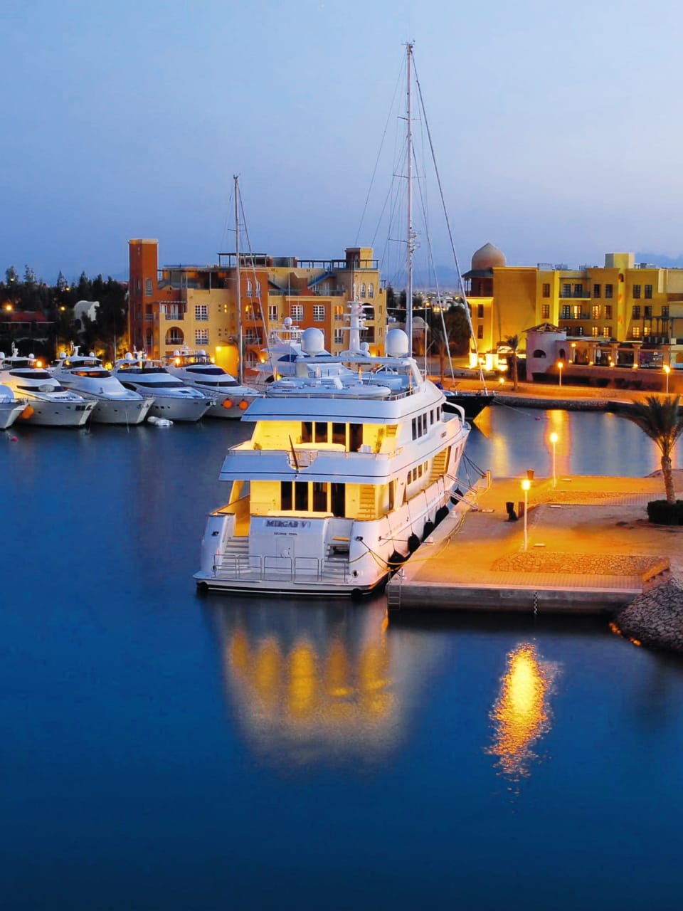 Der Urlaubsort am Roten Meer ist bekannt als ein Paradies für Kitesurfer, aber auch für blaue Lagunen, weiße Sandstrände und bunte Korallenriffe. Das Freizeitangebot reicht von Tauch- und Schnorchel-Ausflügen über Schiffstouren zu alten Fracks bis hin zu Wüstentouren mit dem Jeep oder Quad. Das Herz von El Gouna bildet die Flaniermeile entlang der Marina mit hübschen Bars und Restaurants sowie der Hafen selbst, in dem zahlreichende beeindruckende Yachten liegen.