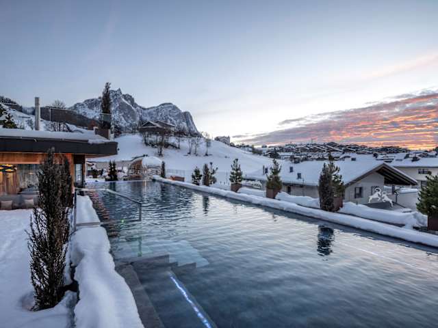 4 Sterne Wellnesshotel in Kastelruth - Südtirol mit OUTDOOR INFINITY SKY POOL auf der Dachterrasse Sie wollen abschalten und neue Energie tanken? Sie möchten Wellness in den Dolomiten genießen und dabei mit Südtiroler Gourmet Küche verwöhnt werden? Sie bevorzugen alpin-modernes Ambiente mit romantischem Chic? Dann sind Sie bei uns im ABINEA Dolomiti Romantic SPA Hotel genau richtig! Das alpin-moderne Ambiente mit romantischer Note, verführt Sie zu entspannten Momenten der Ruhe und Erholung. Die Natur genießen Sie bei uns Innen wie Außen, denn wir haben für Sie die wunderbare Natur Südtirols ins Haus geholt: Unser Wellnesshotel in den Dolomiten nahe der Seiser Alm ist nämlich überwiegend mit Naturmaterialien aus der Berg -Region der Dolomiten ausgestattet.